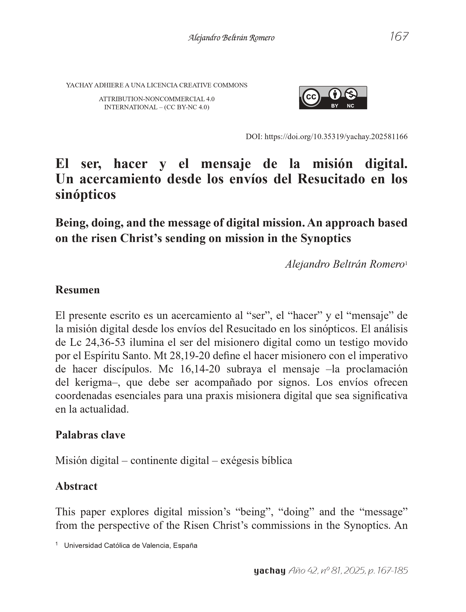 El ser, hacer y el mensaje de la misión digital. Un acercamiento desde los envíos del Resucitado en los sinópticos